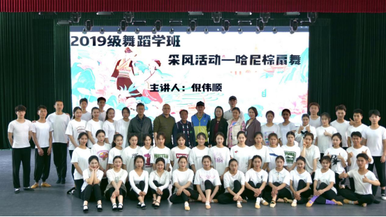 2022年4月11日上午9点,音乐学院2019级舞蹈班采风活动开幕仪式暨首场讲座在舞蹈大楼实验小剧场举行,音乐学院党委书记和虹、副院长(主持工作)范晓晶、党委副书记黄睿、副院长李海燕、陈刚及舞蹈系杜海、王鹏老师参与了开幕仪式并致辞。本次活动还邀请了国家非物质文化遗产哈尼族棕扇舞传承人倪伟顺。