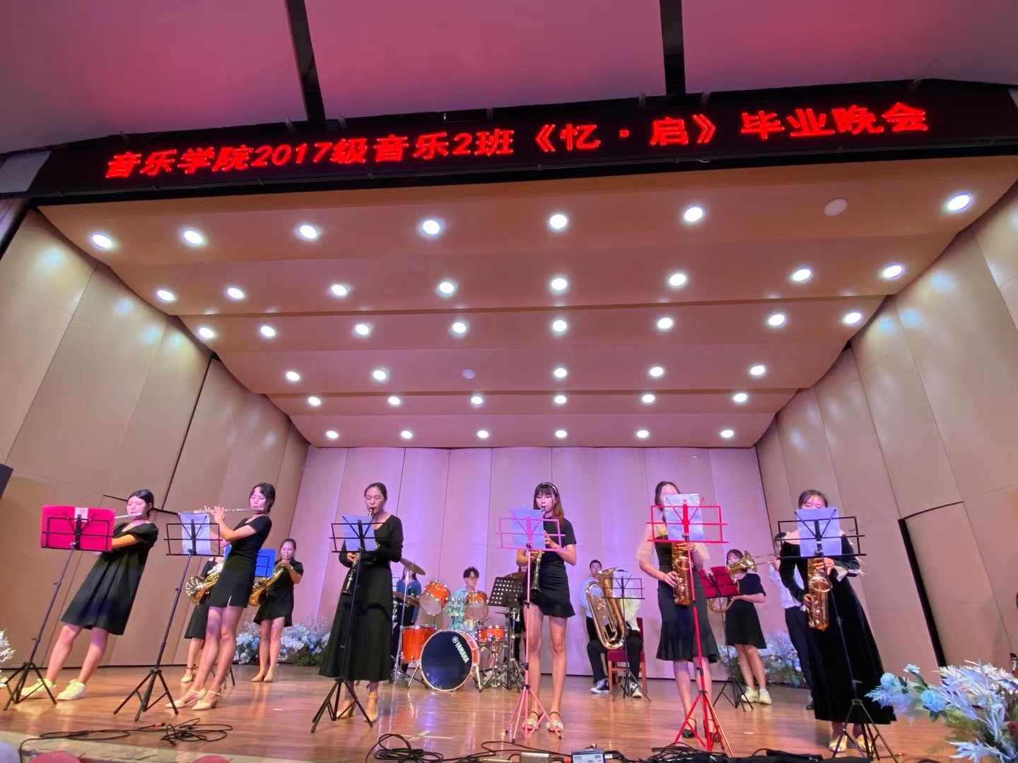 欢声笑语,吹响毕业号角,载歌载舞,镌刻离别思。2021年5月13日19:00,2017级音乐2班在音乐楼聂耳演艺厅举办的毕业晚会如期敲响了离别的音符,学院党委书记何虹、副书记范晓晶、副院长陈刚出席了本场晚会,在乐队的激情澎湃中,以一曲《后来的我们》拉开了序幕。
