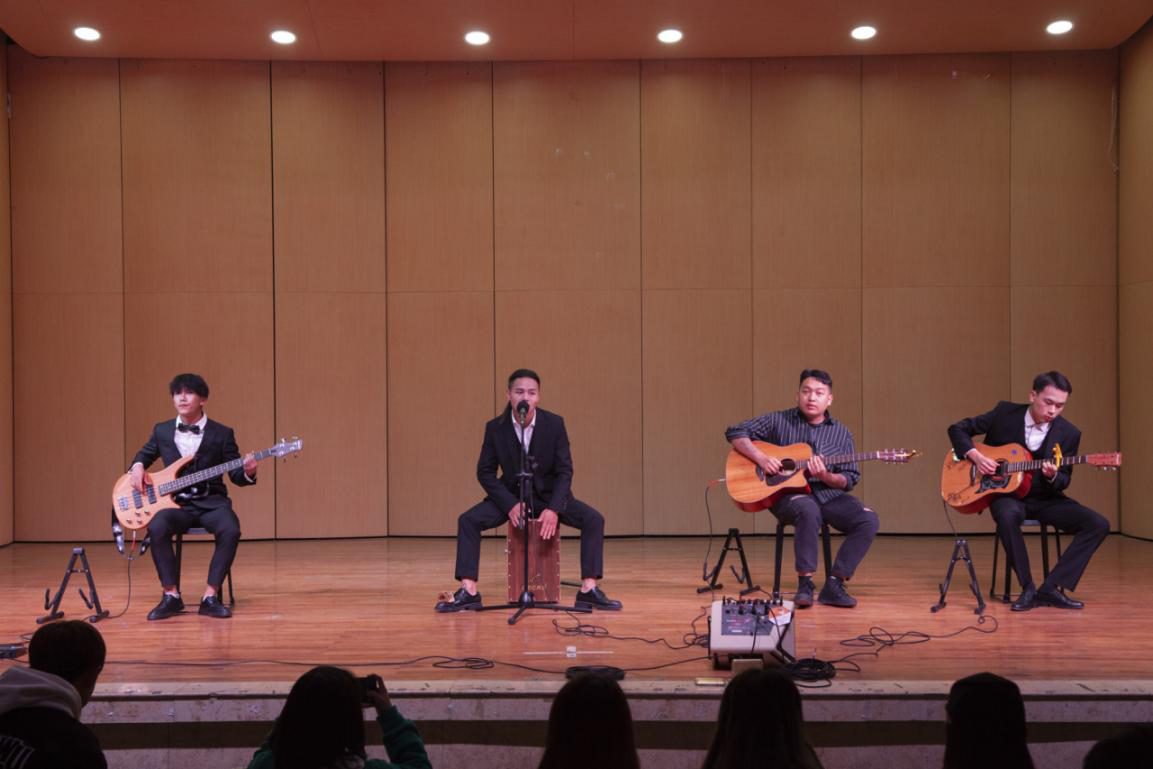 为展示我院教师的教学成果和促进师生的交流,在学院领导的关心中,经过声乐组全体老师的共同努力,12月24日晚七点,音乐学院在聂耳演播厅举办了音乐学专业2018级声乐舞台实践期末汇报演出。声乐舞台实践课程由彭黄老师担任指导教师、周丕仁老师担任钢琴伴奏。学院党政领导、声乐组教师以及学院师生出席观看本场汇报演出。