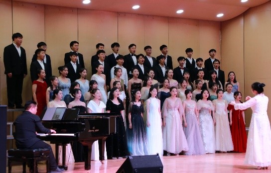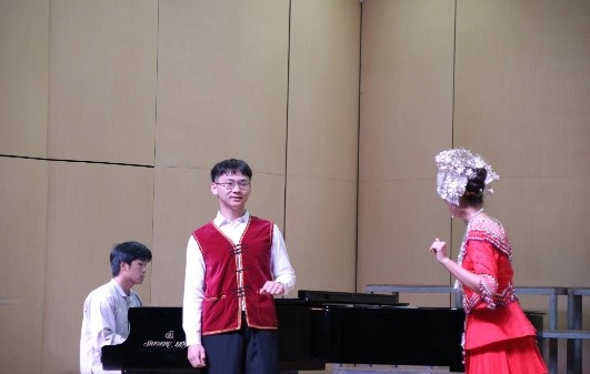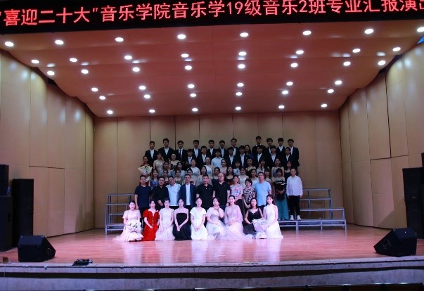 2022年6月23日晚19点30分,喜迎二十大——音乐学19级音乐2班专业汇报演出在音乐学院聂耳演艺厅举行。玉溪市花灯剧院著名演员赵孟、音乐学院副院长(主持工作)范晓晶、副书记黄睿、副院长陈刚、院长助理蔡威、音乐系主任苏鸣、辅导员杨丽娟音乐系教师范钰湘、卫昕以及班主任周树明莅临现场观看。本次演出特别邀请了玉溪市花灯剧院杨洋老师为合唱节目伴奏。