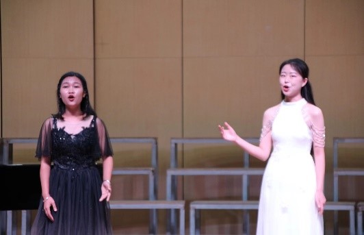 跟随着主持人的步伐,舞台上先后呈现着精彩的节目:颇具古典风情的筝曲《渔舟唱晚》,尽显少数民族特色的《六口茶》《建水小调》《不要怕》,歌剧《小二黑结婚》选段,独具异域风情的古筝独奏《行者》,艺术歌曲《等上一辈子》《蓝色爱琴海》,钢琴四手联弹《草原小姐妹》,最后以花灯合唱《茶山谣》《红梅赞》结束了本场演出。