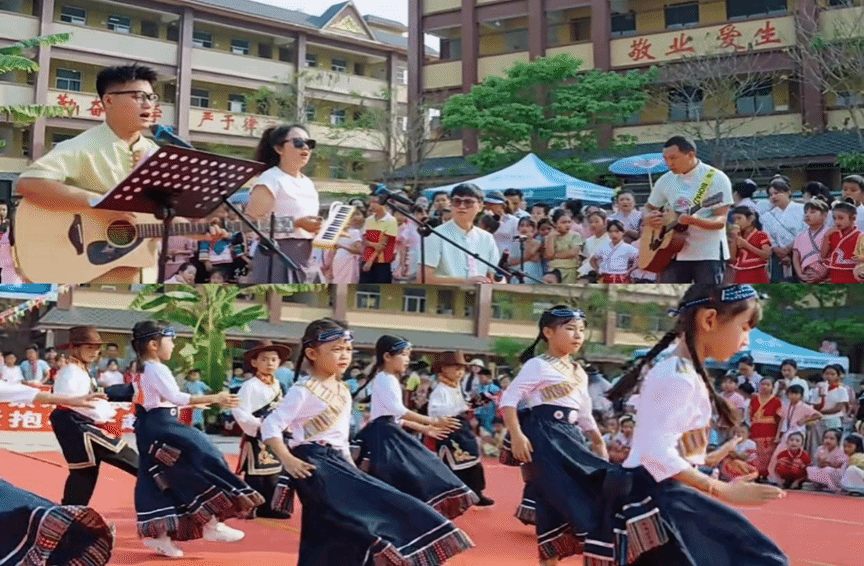 随着时间的推移,我逐渐适应了新的环境,教学也日益自信起来。不仅在课堂上挥洒自如,还积极参与到学校的各项活动中,尤其是傣历1386新年之际的“民族团结共繁荣,吉祥之水泼祝福”系列活动。我作为支教团队的一员,不仅参与了活动的筹备与执行,更亲自组建了小乐队“时光机乐队”,担任吉他手兼主唱,为活动带来了《我们的时光》与《公路之歌》的精彩演出。尽管过程中挑战重重,但正是这些困难,磨砺了我的意志,提升了我的专业能力。