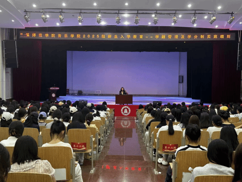 2025年9月6日晚19:00,玉溪师范学院音乐学院于人文讲堂举办“2025级新生入学教育——学籍管理及学分制实施细则”专题讲座,由学院副院长李海燕担任主讲人。