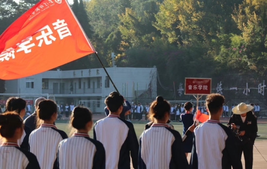 运动场上,各班方阵队排着整齐的队伍、穿上统一的服装,师生们个个精神饱满,充满了拼搏的活力与必胜的自信。由航空服务艺术与管理14名同学承担各学院引导员工作。
