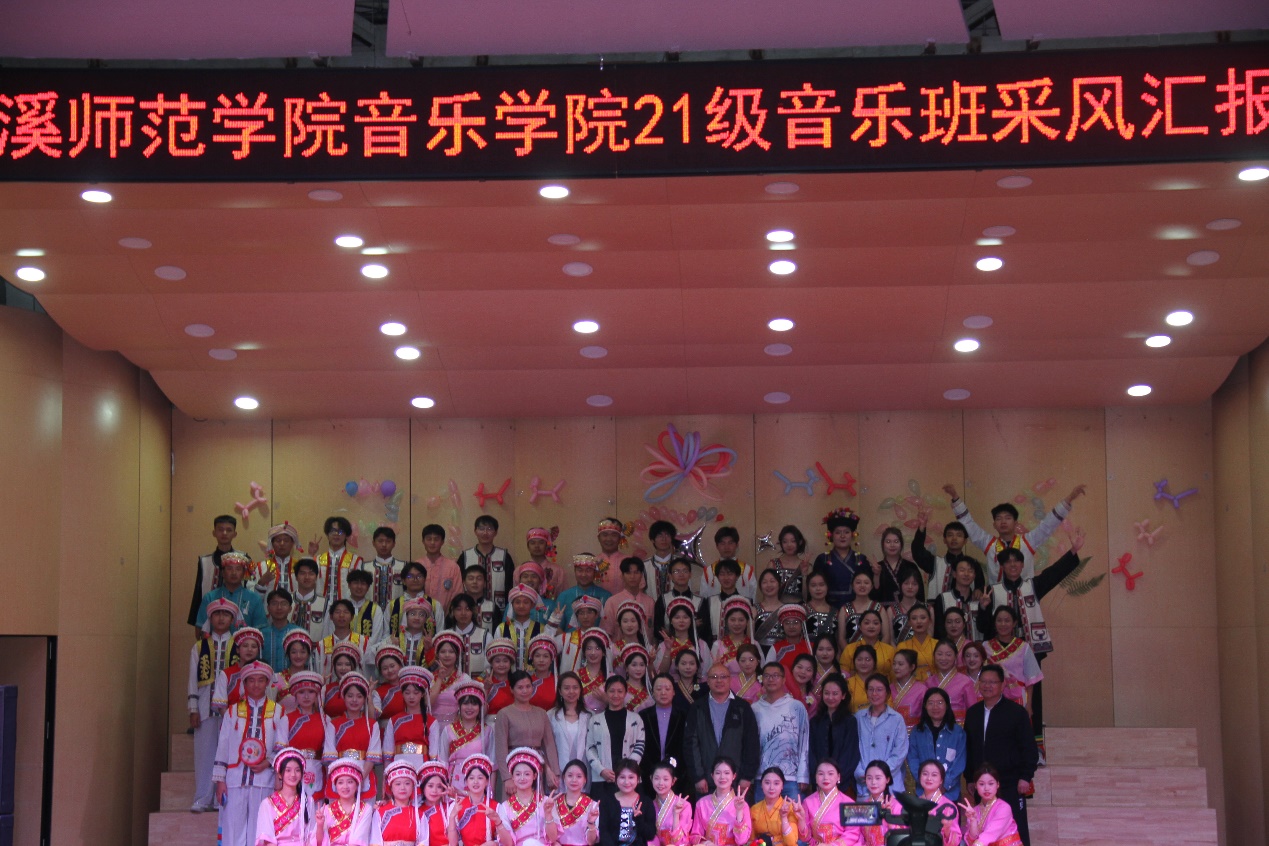 演出以拉祜族歌曲《贺开山茶花香》开场,将现场气氛带入极具少数民族特色的演出中,接下来的节目类型丰富,有白族民歌和弥渡花灯《歌曲串烧》、拉祜族的《拉祜族布朗族祝酒歌》、白族民歌《小河淌水》、白族歌舞《弦子弹到你门前》、傣族歌舞《赶摆归来》、傣族民歌《让我听懂你的语言》、白族歌曲《心肝票》等;汇报演出最后在欢乐的白族打跳中落下帷幕。2021级音乐学班采风汇报演出一共展现了五个少数民族的传统歌舞,在极具少数民族文化特色的同时又融入了许多现代音乐与表演元素,是一场精彩绝伦的视听盛宴。