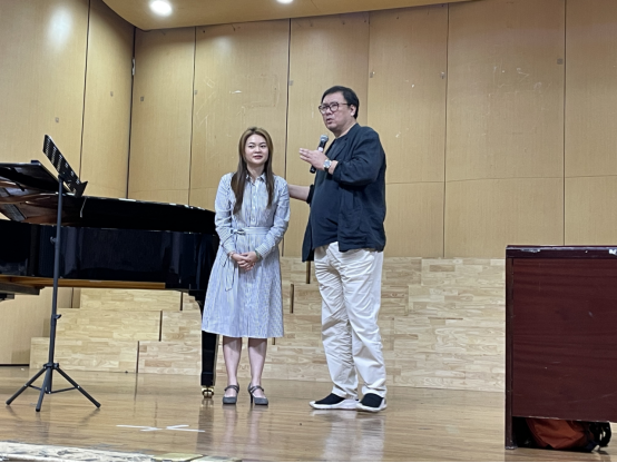 报告会上,马金泉教授围绕“被歌者和声乐教师言及的发声器官”“发声器官的演唱意念及声乐教学”等研究内容,着重从演唱、教学等方面介绍了其多年的表演经验及学术成果,强调了基本“乐感”、歌词“咬字”、换声等在演唱与教学之中的重要性,展望了中国歌曲艺术化研究前景,并对玉溪师范学院青年学子投身声乐演唱与教学领域的研究与实践表示鼓励与期待。