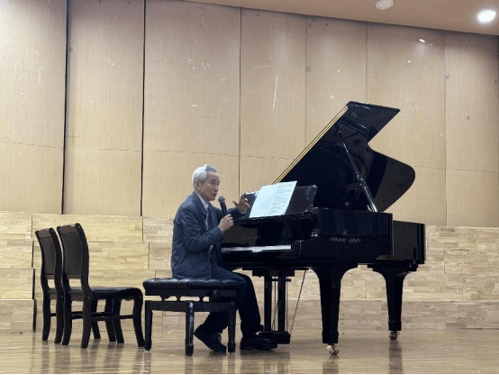 在讲座中,李未明教授概述了“和声”是“听、探索、运用”的结合,学习时要发展内心听觉,感受“和声色彩”,同时把握“和声连接转换的逻辑要求”,他以深入浅出的方式,从和声的基本原理到复杂的和弦运用,再到即兴演奏中的技巧与创意,每一个环节都剖析得清晰透彻,通过现场演奏四十余首由他亲自编配的经典钢琴作品范例,使抽象的和声理论知识变得生动、直观、有趣,精彩的演奏瞬间点燃了现场的气氛,全场听众都沉浸在美妙的音乐中,深刻感受和声与即兴演奏的魅力。李末明教授不仅展现了高超的演奏技艺,同时展示了精湛的教学方法。在钢琴大师班的教学过程中,全场师生聚精会神,随时记录知识重点,积极与李教授教学互动。音乐学院多位同学争相上台弹奏自己编配的钢琴即兴伴奏作品,李教授细致地听完同学们的弹奏之后,多次示范讲解并且耐心解答同学们在和声学习与钢琴实践演奏中遇到的问题,给予了宝贵的建议和指导,师生们受益匪浅。