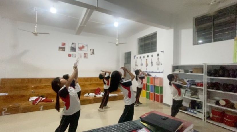 备赛期间,排练强度大、时间紧,她始终陪伴在学生身边,给予鼓励与支持。面对困难与瓶颈,耐心分析问题,帮助学生们调整心态、突破自我。有时为了打磨一个细节,一个动作反复练习,力求将作品呈现得尽善尽美。