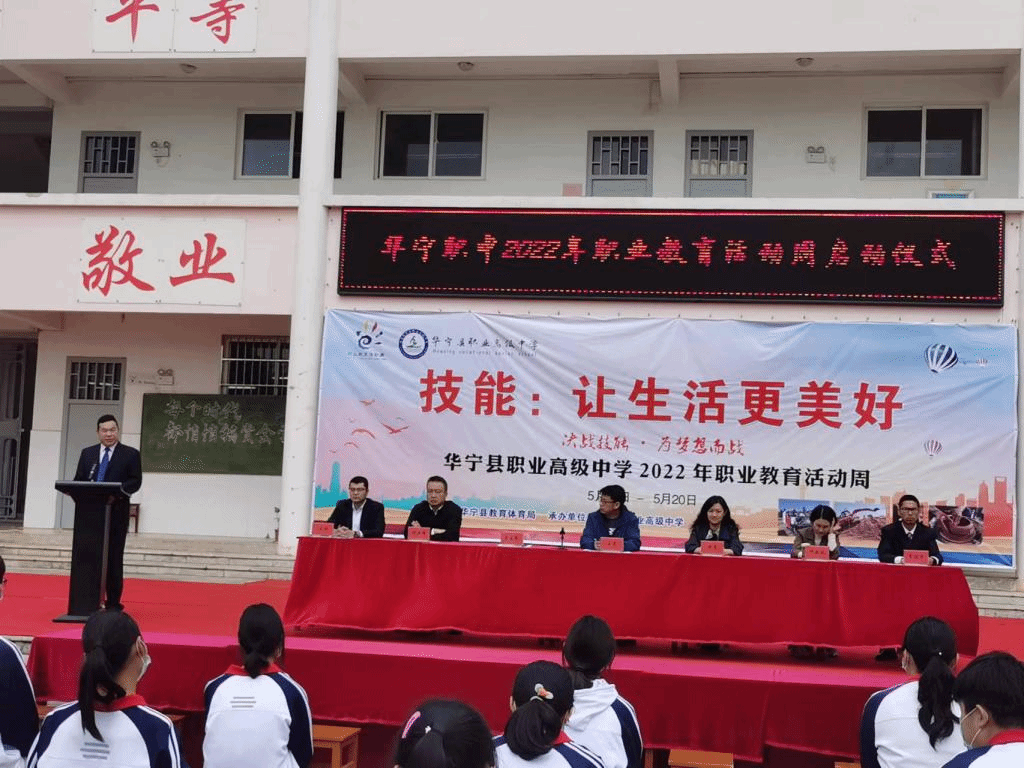 5月18日,音乐学院党委副书记黄睿带队赴华宁县开展“访企拓岗”促就业专项活动,并参加华宁职中2022年职业教育活动周启动仪式。