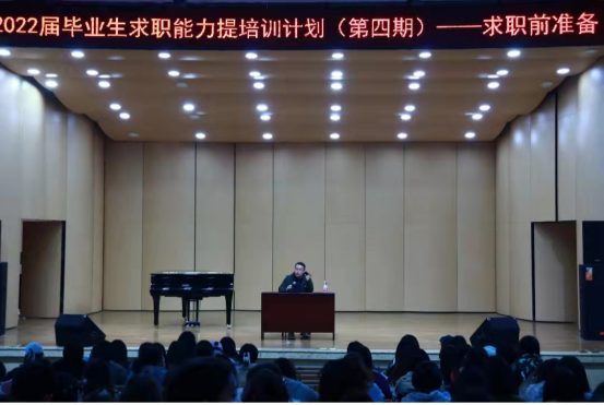 为加快推进2022届毕业生的就业指导工作, 帮助毕业生适应就业形势,转变就业观念,提前做好求职前的准备,我院于2021年11月26日承办了2022届毕业生求职能力培训计划讲座。讲座由我院辅导员杨丽娟老师主持,特别邀请了学工部副处长宋树兵老师为我院应届毕业生讲解简历的制作、推荐表的填写、协议的签订等内容。