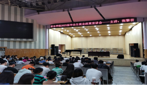 为了进一步加强大学毕业生对当前就业形势的认识、增强就业观念、提高自身竞争能力,缓解就业压力,助力学校全体毕业生顺利就业,音乐学院于3月20日上午在聂耳演艺厅开展2023届毕业生就业政策宣讲会。讲座由张黎芸老师主持,2023届全体毕业生参与此次活动。