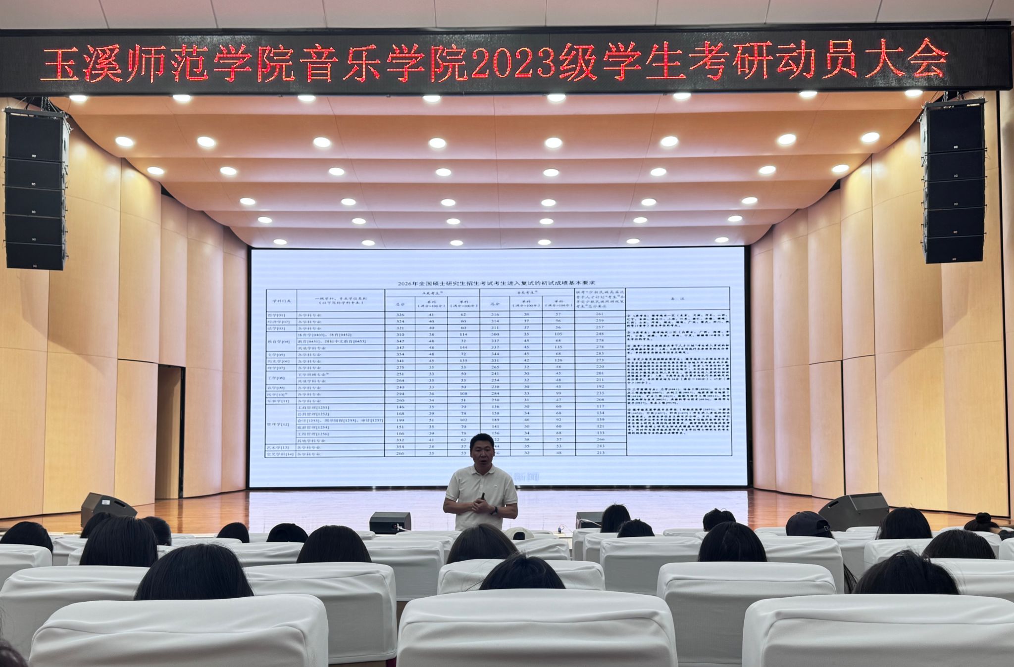 为提高音乐学院2027届毕业学生的考研积极性,帮助学生科学备考,3月30日及31日晚7:30,我院分别在舞蹈大楼3楼小剧场及聂耳演艺厅举办了2023级学生考研动员大会。讲座特邀考研咨询专家王万胜老师主讲,由音乐学院科研秘书李思梦老师主持,音乐学、舞蹈学、航空服务艺术与管理三个专业的学生参会。